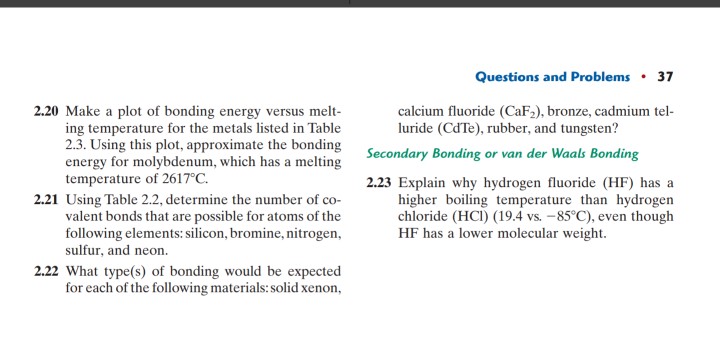 Solved Questions And Problems37 2 20 Make A Plot Of Bonding Chegg Com